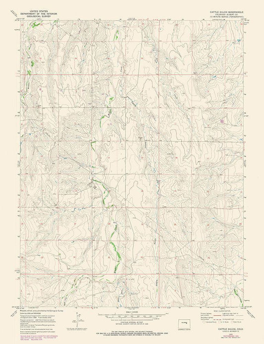 Cattle Gulch Colorado Quad - USGS 1978 White Modern Wood Framed Art Print with Double Matting by USGS