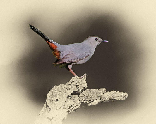 Cat Bird White Modern Wood Framed Art Print with Double Matting by Brown, Jim