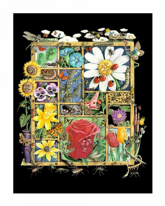 Shadowbox Hunt -Bugs and Bloss White Modern Wood Framed Art Print with Double Matting by Seeley, Laura
