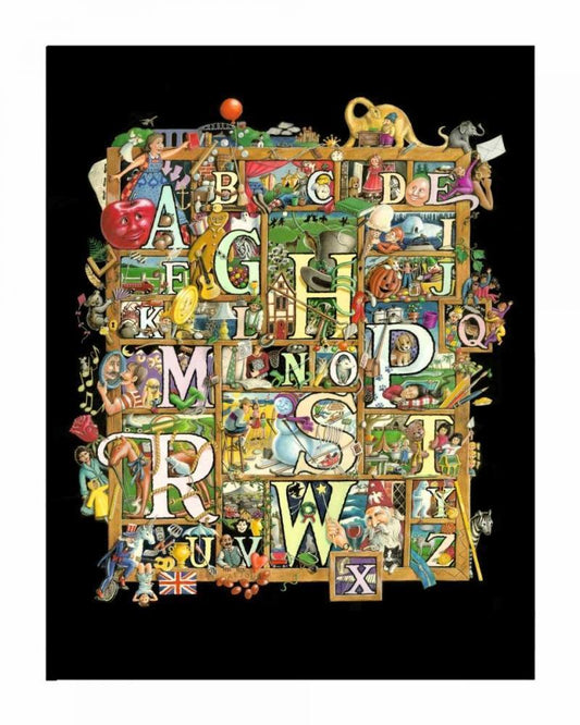 Shadowbox Hunt -Alphabet Soup White Modern Wood Framed Art Print with Double Matting by Seeley, Laura