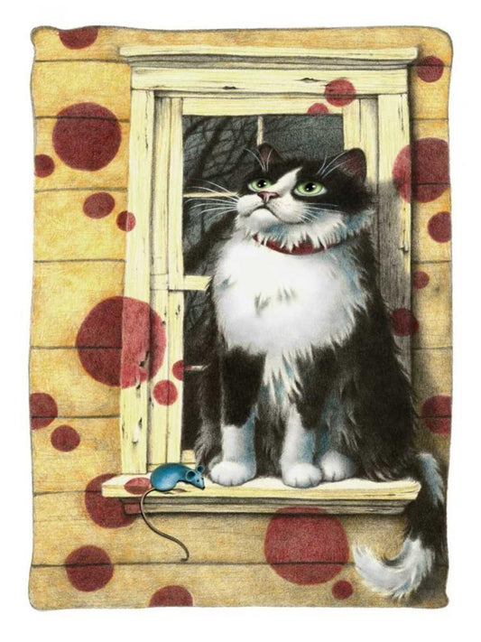 Power Nap (with Mouse) White Modern Wood Framed Art Print with Double Matting by Seeley, Laura