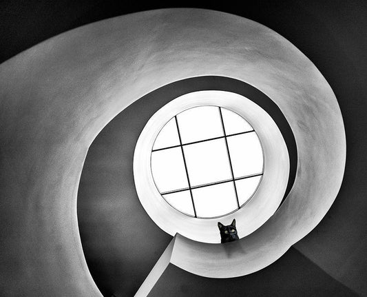 Elevated Cat White Modern Wood Framed Art Print with Double Matting by Danek, Pascal