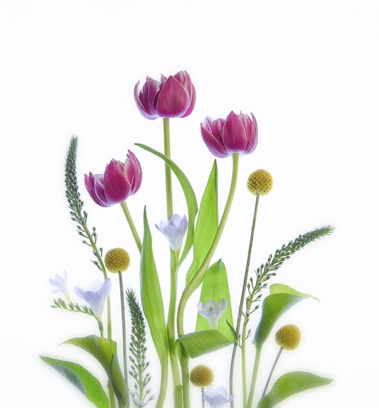 Floral Ballet White Modern Wood Framed Art Print with Double Matting by Studio, Catchlight