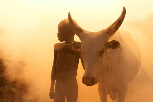 Boy Of Cattle White Modern Wood Framed Art Print with Double Matting by Alhumaid, Hesham