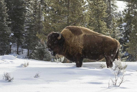 Wyoming, Yellowstone NP Bison standing in snow White Modern Wood Framed Art Print with Double Matting by Illg, Cathy and Gordon
