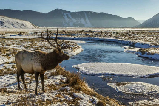 WY, National Elk Refuge Male elk next to stream White Modern Wood Framed Art Print with Double Matting by Illg, Cathy and Gordon
