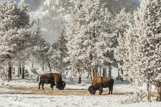 Wyoming, Yellowstone NP Winter grazing bison White Modern Wood Framed Art Print with Double Matting by Illg, Cathy and Gordon