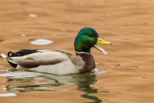 USA, New Mexico Male mallard duck in water White Modern Wood Framed Art Print with Double Matting by Illg, Cathy and Gordon