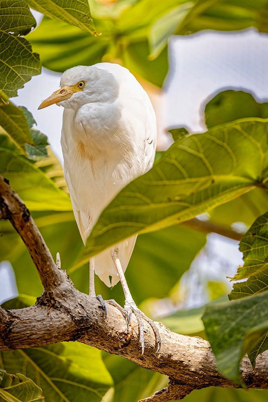 USA-New Mexico-Alamogordo-Alameda Park Zoo Cattle egret in tree White Modern Wood Framed Art Print with Double Matting by Jaynes Gallery