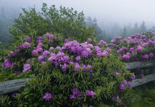 NC, Roan Mt Catawba rhododendrons along fence White Modern Wood Framed Art Print with Double Matting by Rotenberg, Nancy