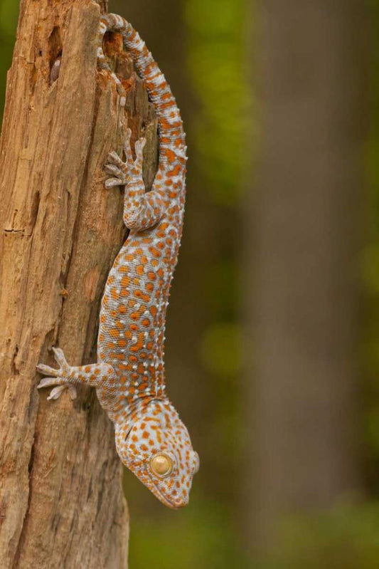 USA, North Carolina Tokay gecko on a tree stump White Modern Wood Framed Art Print with Double Matting by Illg, Cathy and Gordon