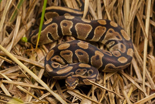 USA, North Carolina Ball python in dried grass White Modern Wood Framed Art Print with Double Matting by Illg, Cathy and Gordon
