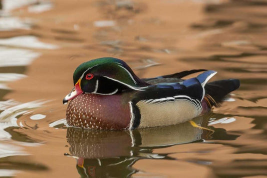 USA, New Mexico Wood duck swimming in water White Modern Wood Framed Art Print with Double Matting by Illg, Cathy and Gordon