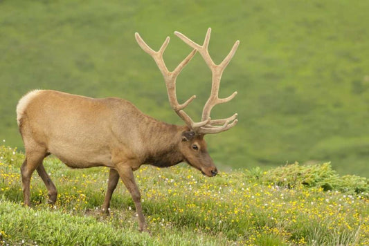 Colorado, Rocky Mts Bull elk in velvet walking White Modern Wood Framed Art Print with Double Matting by Illg, Cathy and Gordon
