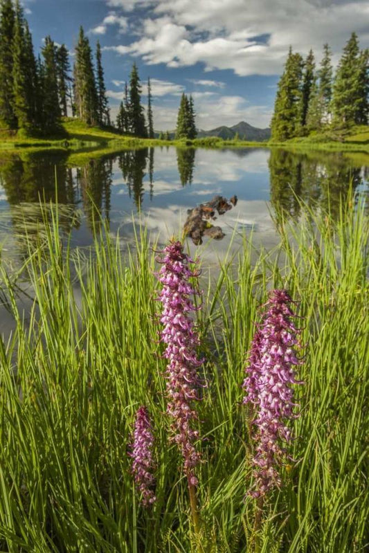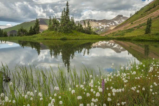 CO, San Juan Mts Lake and alpine sunflowers White Modern Wood Framed Art Print with Double Matting by Illg, Cathy and Gordon