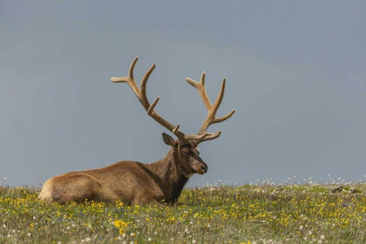 Colorado, Rocky Mts Bull elk in velvet resting White Modern Wood Framed Art Print with Double Matting by Illg, Cathy and Gordon