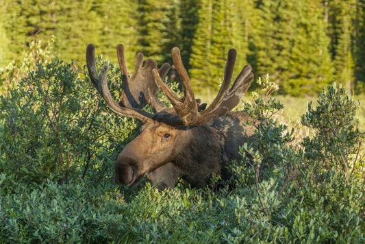 Colorado, Brainard Lake Moose in velvet antlers White Modern Wood Framed Art Print with Double Matting by Illg, Cathy and Gordon