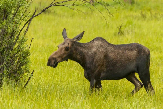 Colorado, Rocky Mts, moose cow standing in grass White Modern Wood Framed Art Print with Double Matting by Illg, Cathy and Gordon
