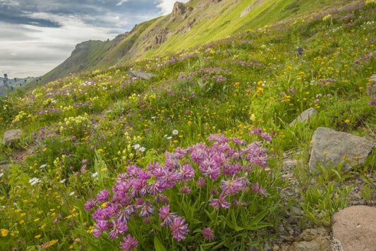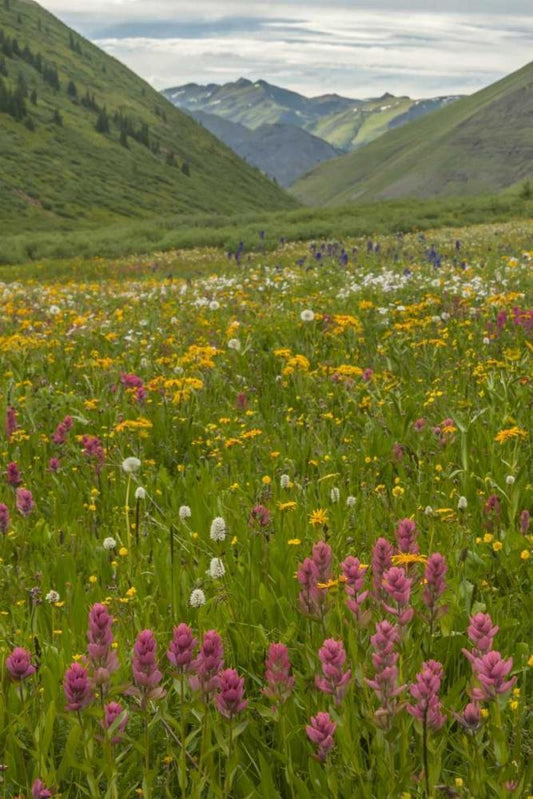 CO, San Juan Mts flowers and mountain landscape White Modern Wood Framed Art Print with Double Matting by Illg, Cathy and Gordon