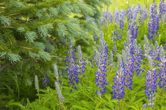 Colorado, Gunnison NF Lupine and pine tree limbs White Modern Wood Framed Art Print with Double Matting by Illg, Cathy and Gordon