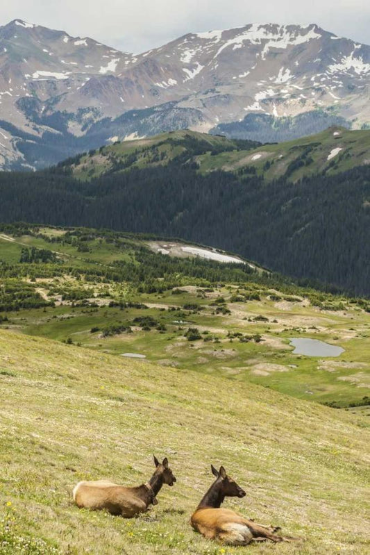 CO, Rocky Mts Elk cows and mountain landscape White Modern Wood Framed Art Print with Double Matting by Illg, Cathy and Gordon