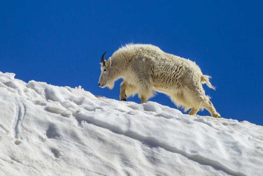 CO, Mt Evans Mountain goat walks on summer snow White Modern Wood Framed Art Print with Double Matting by Illg, Cathy and Gordon