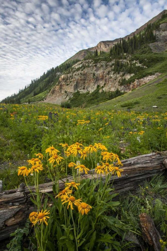 Colorado, Crested Butte Wildflowers and old log White Modern Wood Framed Art Print with Double Matting by Illg, Cathy and Gordon