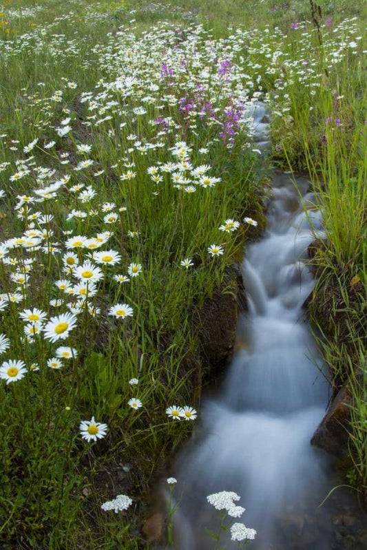 Colorado, San Juan Mts Daisies next to stream White Modern Wood Framed Art Print with Double Matting by Illg, Cathy and Gordon