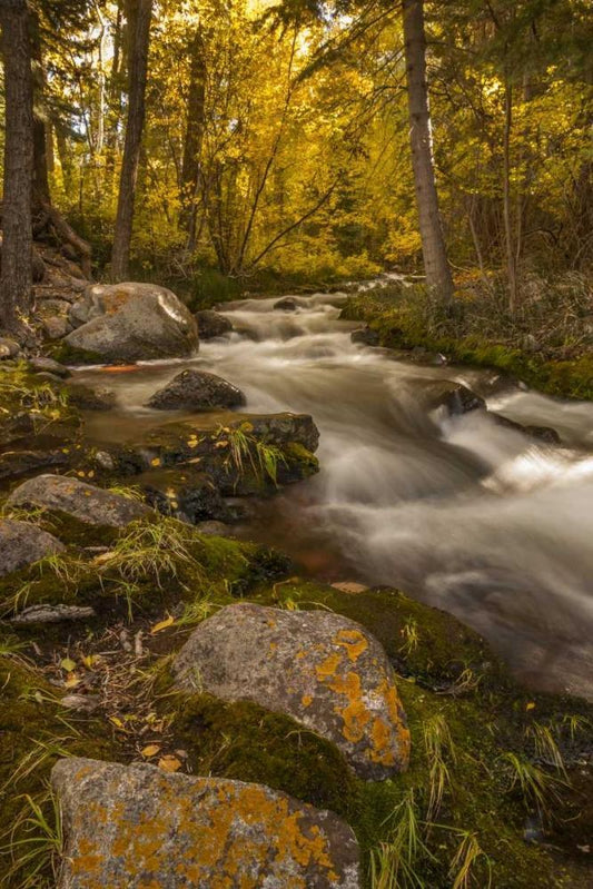 USA, Colorado Autumn colors on Crestone Creek White Modern Wood Framed Art Print with Double Matting by Illg, Cathy and Gordon