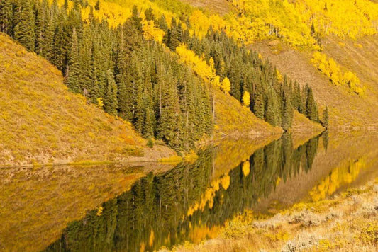 CO, Rocky Mts Autumn reflection on Long Lake White Modern Wood Framed Art Print with Double Matting by Illg, Cathy and Gordon