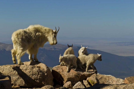 CO, Mt Evans Mountain goat kids and nanny White Modern Wood Framed Art Print with Double Matting by Illg, Cathy and Gordon