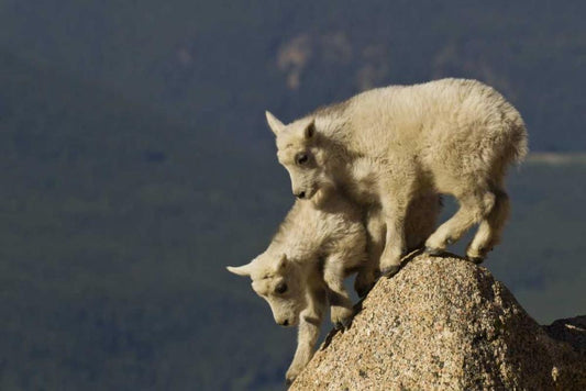 CO, Mount Evans Mountain goat kids climbing White Modern Wood Framed Art Print with Double Matting by Illg, Cathy and Gordon
