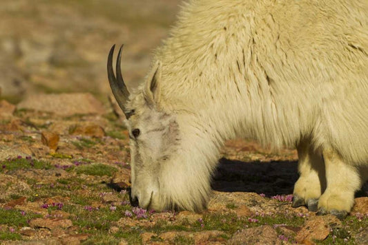 CO, Mt Evans Mountain goat feeding on flowers White Modern Wood Framed Art Print with Double Matting by Illg, Cathy and Gordon