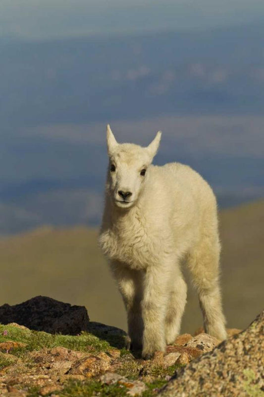 CO, Mount Evans Front view of mountain goat kid White Modern Wood Framed Art Print with Double Matting by Illg, Cathy and Gordon