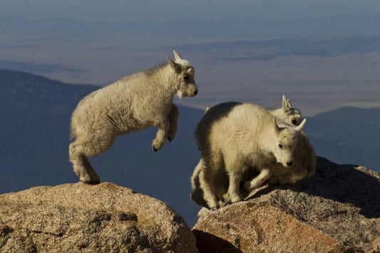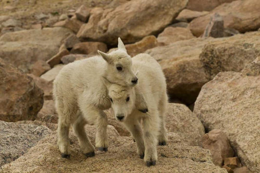 CO, Mount Evans Two mountain goat kids playing White Modern Wood Framed Art Print with Double Matting by Illg, Cathy and Gordon
