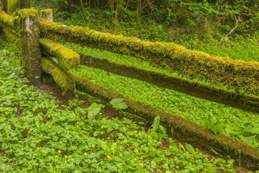 USA, California, Redwoods NP Moss-covered fence White Modern Wood Framed Art Print with Double Matting by Illg, Cathy and Gordon