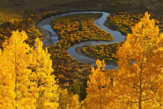 CO, Gunnison NF Autumn color and the East River White Modern Wood Framed Art Print with Double Matting by Illg, Cathy and Gordon