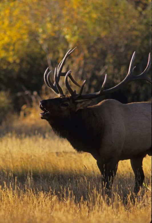 Colorado, Rocky Mountain NP Bull elk bugling White Modern Wood Framed Art Print with Double Matting by Illg, Cathy and Gordon