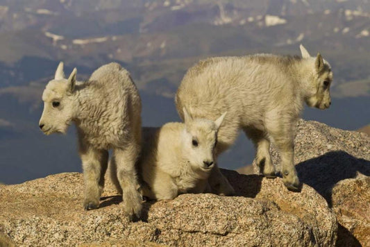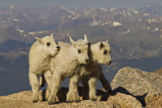CO, Mt Evans Three mountain goat kids on rock White Modern Wood Framed Art Print with Double Matting by Illg, Cathy and Gordon
