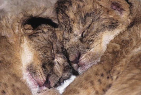 CA, Los Angeles Co, Two sleeping lion babies White Modern Wood Framed Art Print with Double Matting by Welling, Dave