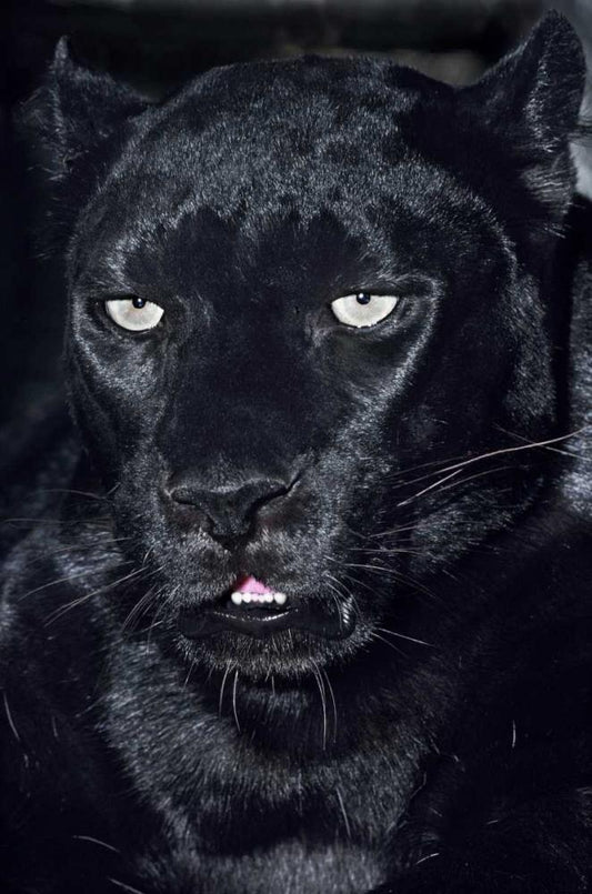 CA, Los Angeles, Portrait of black jaguar adult White Modern Wood Framed Art Print with Double Matting by Welling, Dave
