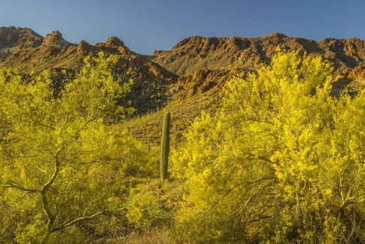 AZ, Coronado NF Saguaro cactus and palo verde White Modern Wood Framed Art Print with Double Matting by Illg, Cathy and Gordon