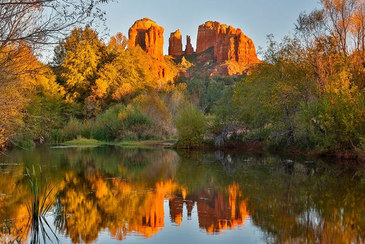 USA- Arizona- Red Rock State Park with Oak Creek and Cathedral Rock White Modern Wood Framed Art Print with Double Matting by Gulin, Darrell