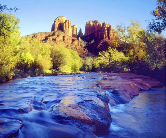 Arizona, Sedona Cathedral Rock and Oak Creek White Modern Wood Framed Art Print with Double Matting by Talbot Frank, Christopher