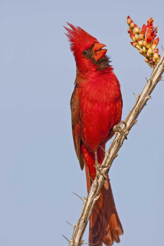 Arizona Male cardinal eating ocotillo blossom White Modern Wood Framed Art Print with Double Matting by Illg, Cathy and Gordon