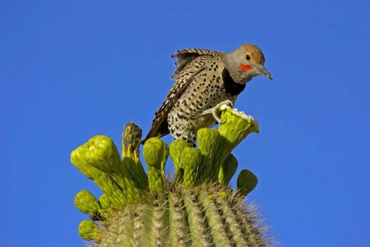AZ, Pima Co, Gilded flicker on saguaro blossom White Modern Wood Framed Art Print with Double Matting by Illg, Cathy and Gordon