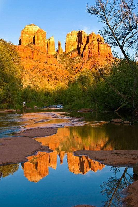 USA, Arizona Cathedral Rock reflects in creek White Modern Wood Framed Art Print with Double Matting by OBrien, Jay