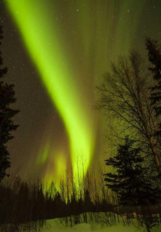 USA, Alaska Aurora borealis over forest White Modern Wood Framed Art Print with Double Matting by Illg, Cathy and Gordon