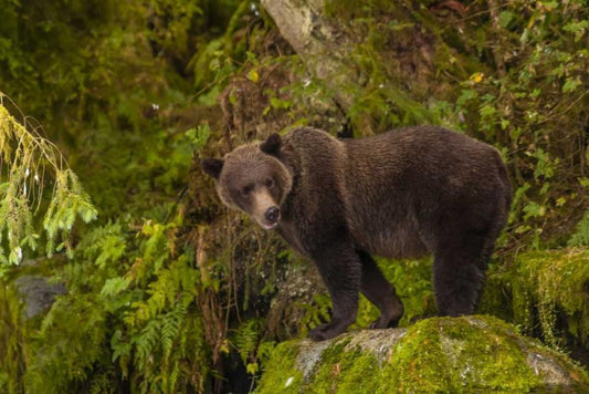 AK, Tongass NF Grizzly bear standing on boulder White Modern Wood Framed Art Print with Double Matting by Illg, Cathy and Gordon