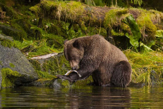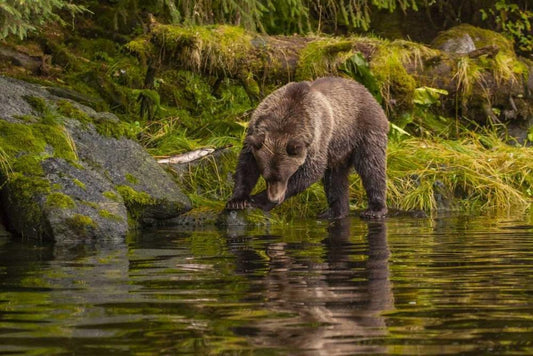 AK, Tongass NF Grizzly bear hunts for salmon White Modern Wood Framed Art Print with Double Matting by Illg, Cathy and Gordon